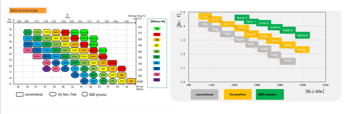 | Grade | Br | Hcb / ≥ | Hcj / ≥ | (BH)max | ||||
